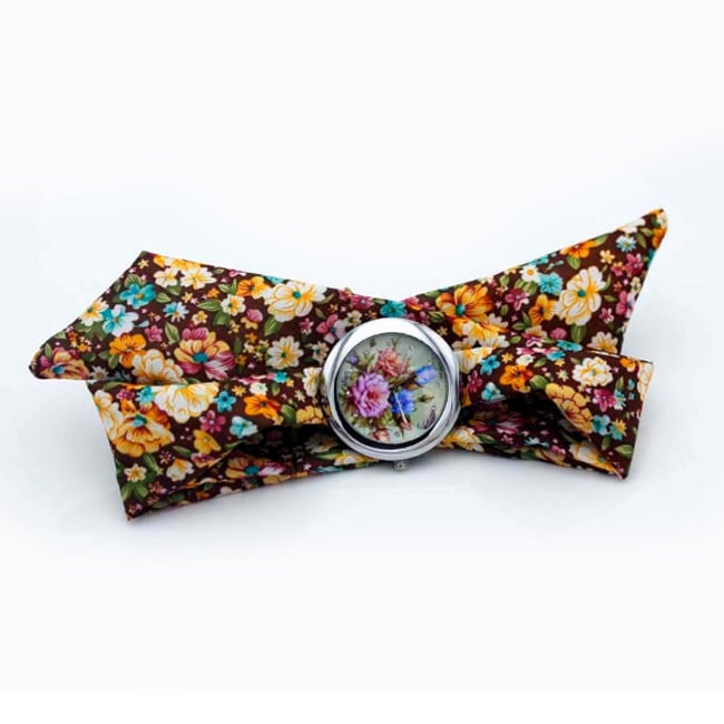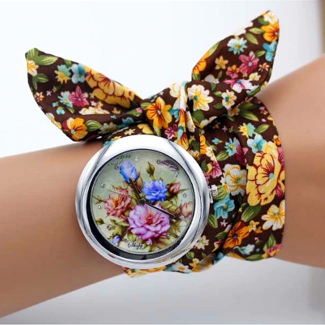 Divatos, nyárias karóra barna, virágos szövet szíjjal – nagyméretű számlappal