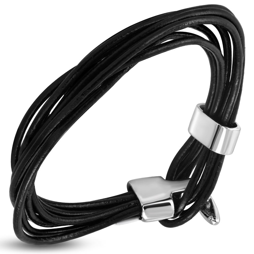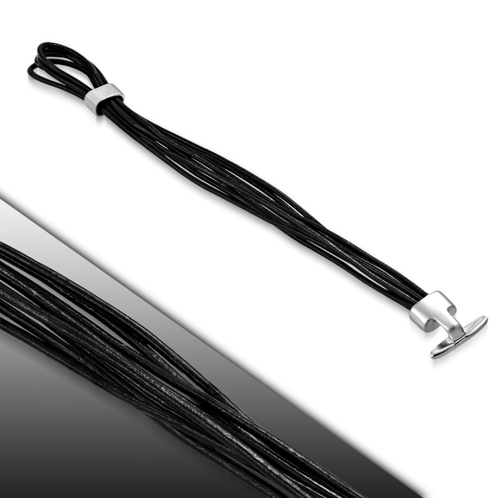 Több szálas, fonott fekete bőr karkötő