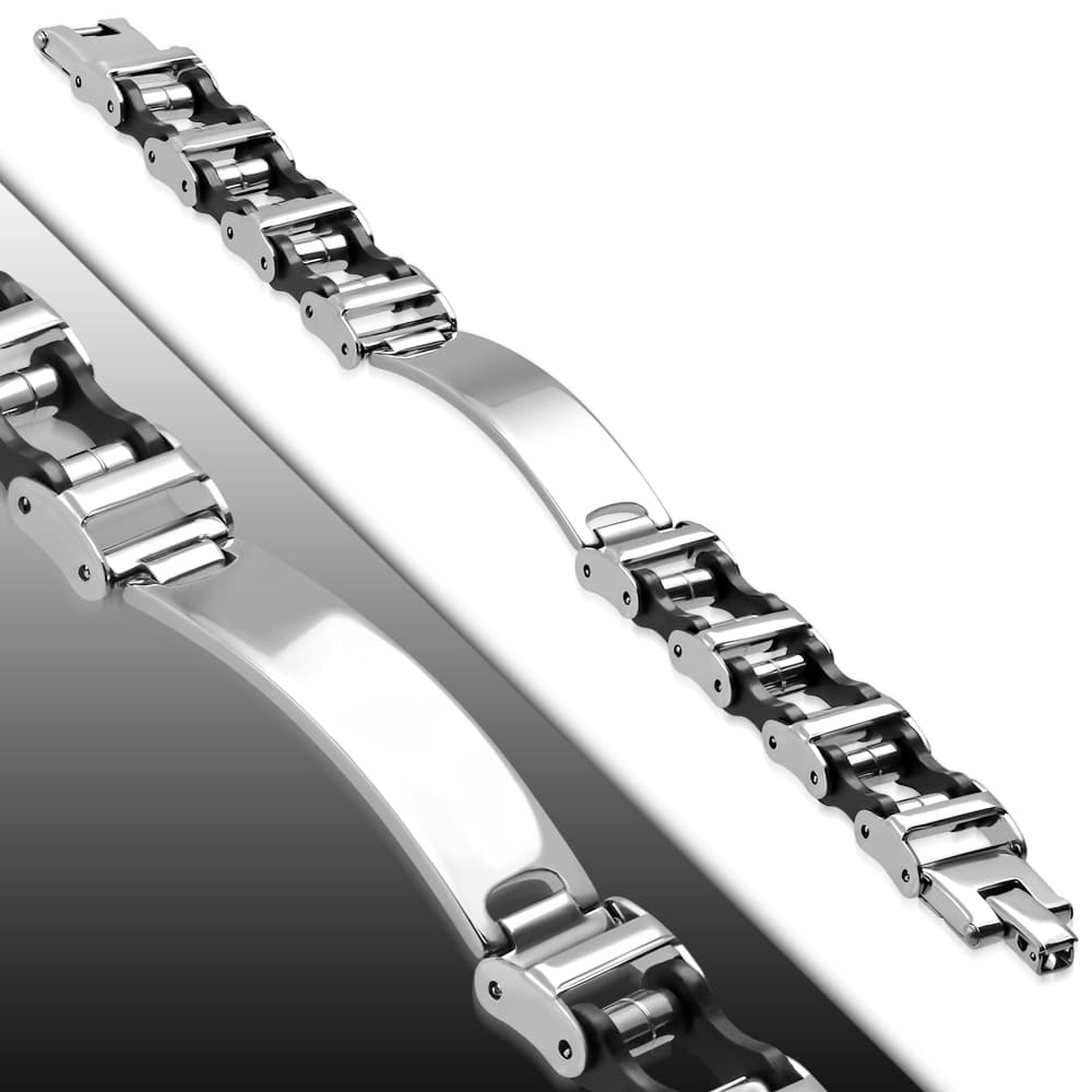 Dorian Ezüst színű gravírozható nemesacél karkötő kaucsuk dísszel