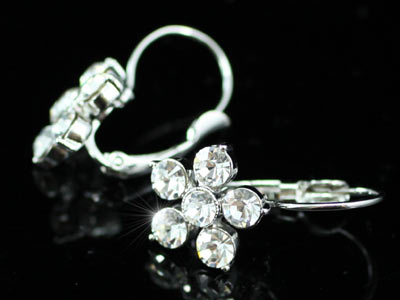 Elegáns Átlátszó és Fehér Virágos Kristályos Fülbevaló: Ragyogás és Kifinomultság