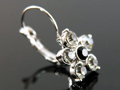 Elegáns Fekete és Szürke Virágos Kristályos Fülbevaló – Ebony