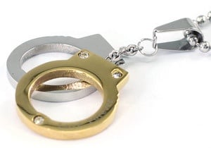 Arany és ezüst színű, bilincs medálos férfi nyaklánc cirkóniával