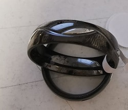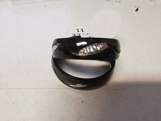 October – Fekete karika gyűrű levél formájú ezüst színű berakással