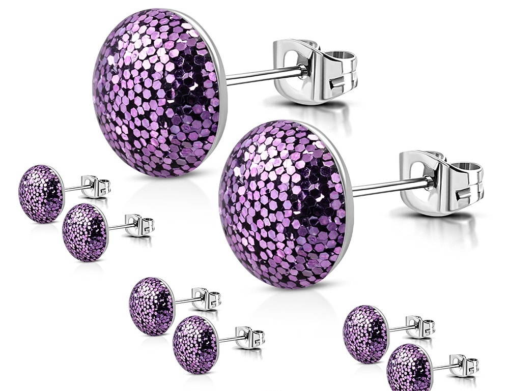 Tülle – lila csillámos színű nemesacél fülbevaló ékszer