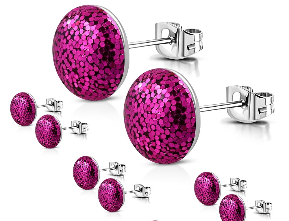 Tülle – ciklámen csillámos színű nemesacél fülbevaló ékszer