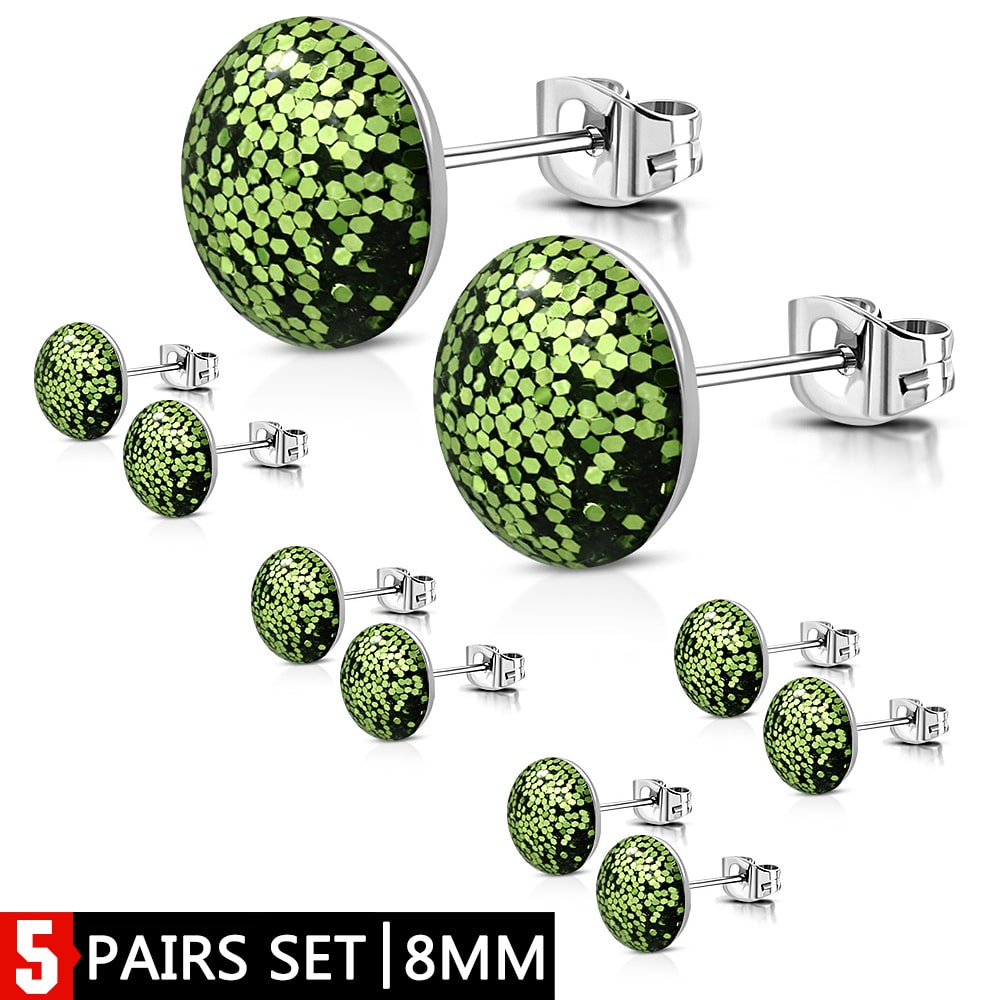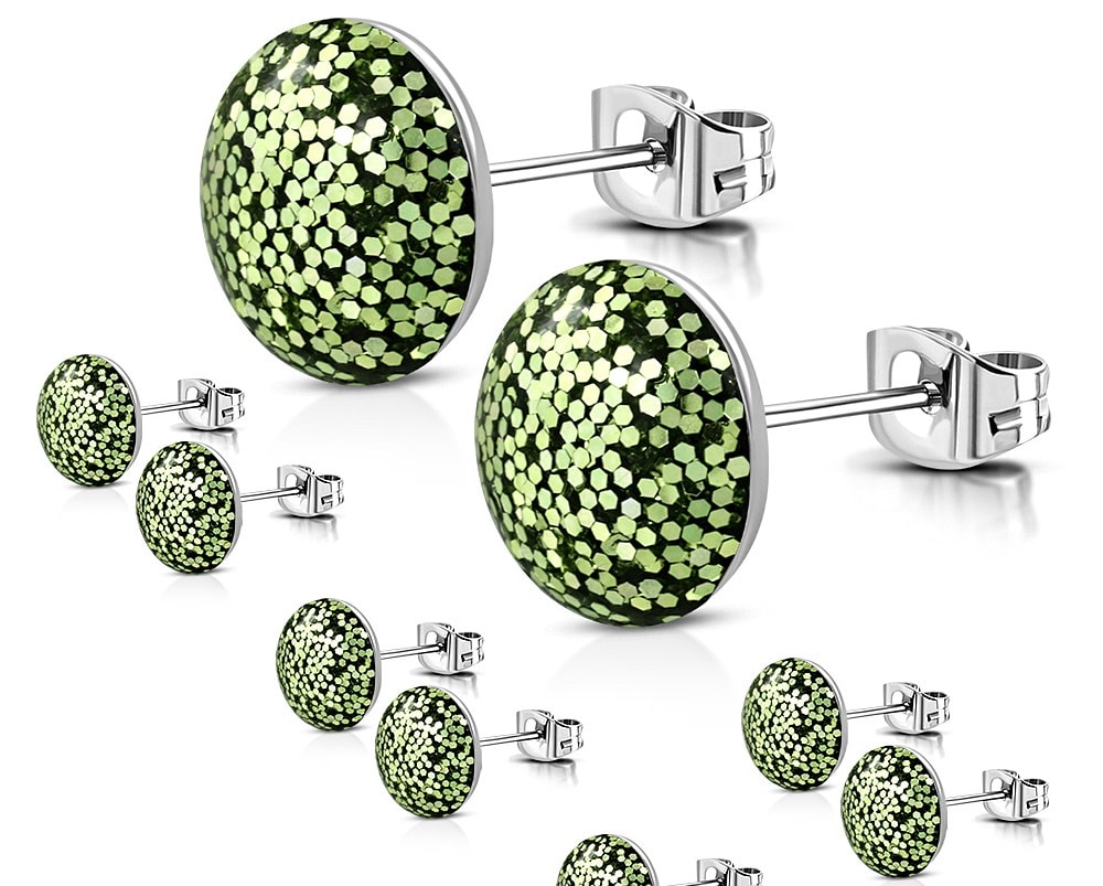 Tülle – zöld csillámos színű nemesacél fülbevaló ékszer