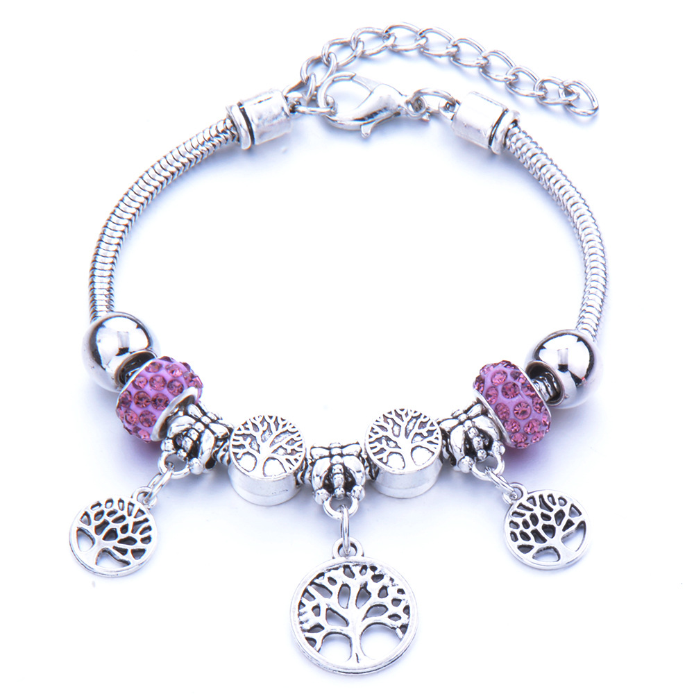 Életfa medállal pandora stílusú charm kristályos karkötő – Lila