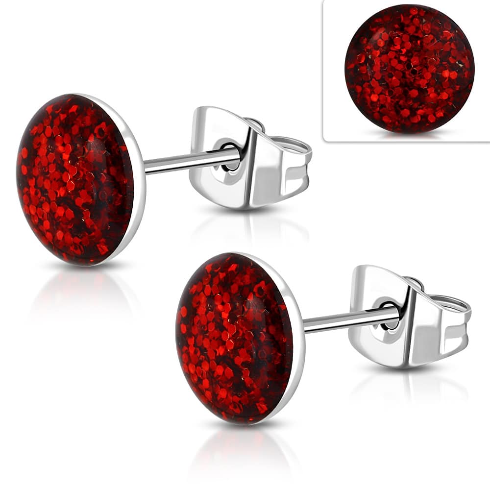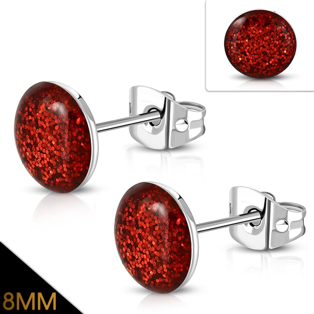 Flake nemesacél fülbevaló – Erdő zöld, kristály mintás – 8 mm