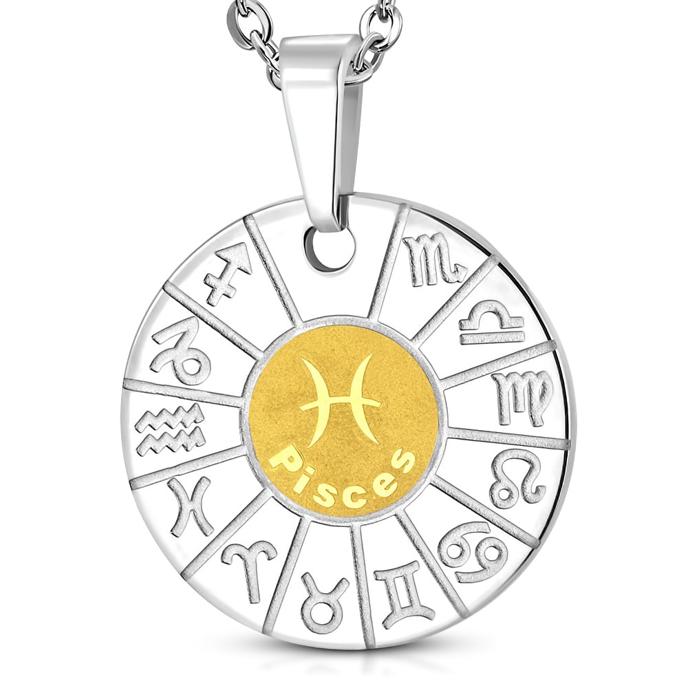 Ezüst és arany színű, kör alakú halak horoszkóp nemesacél medál