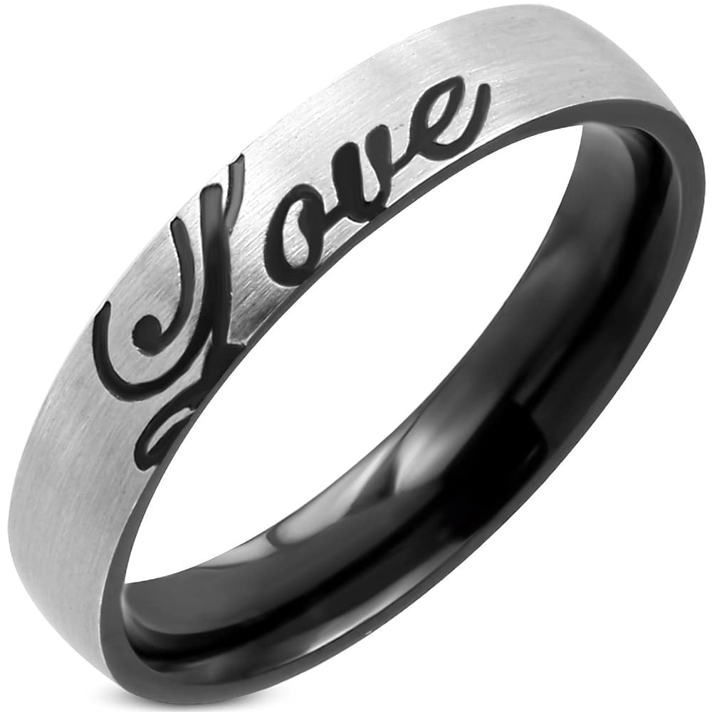 Ezüst és fekete színű nemesacél gyűrű, LOVE felirattal