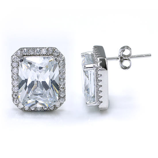 Ezüst fülbevaló, négyzet alakú kristállyal – 925 ezüst ékszer
