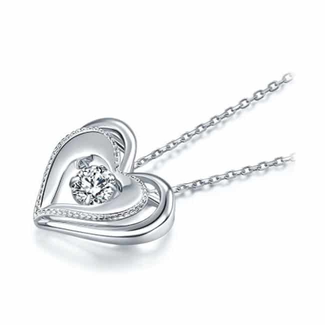 Ezüst nyaklánc,dupla szíves alakú “táncoló” szintetikus gyémánt medállal – 925 ezüst ékszer