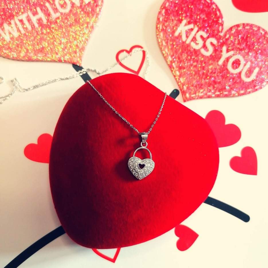 Ezüst nyaklánc, szív alakú, szintetikus gyémánt medállal – 925 ezüst ékszer