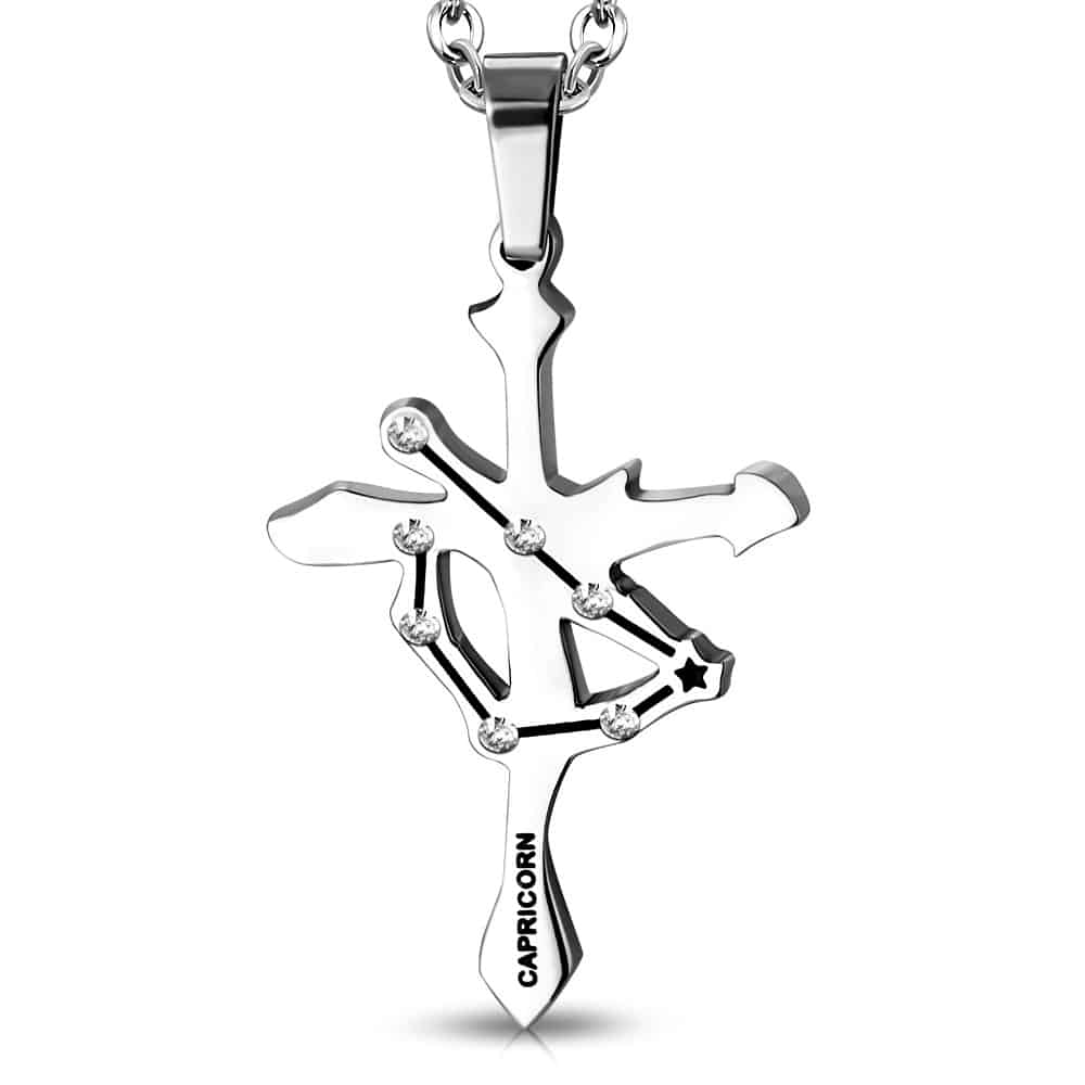Ezüst színű, Bak horoszkóp nemesacél medál, cirkónia kristállyal