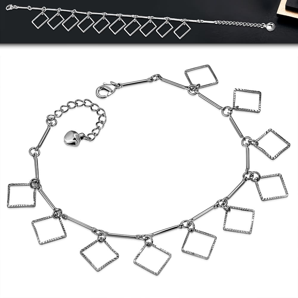 Ezüst színű bokalánc szögletes dísszel