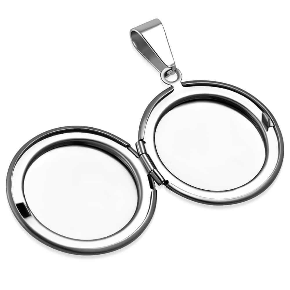 Ezüst színű gravírozható kör fényképtartós nemesacél medál