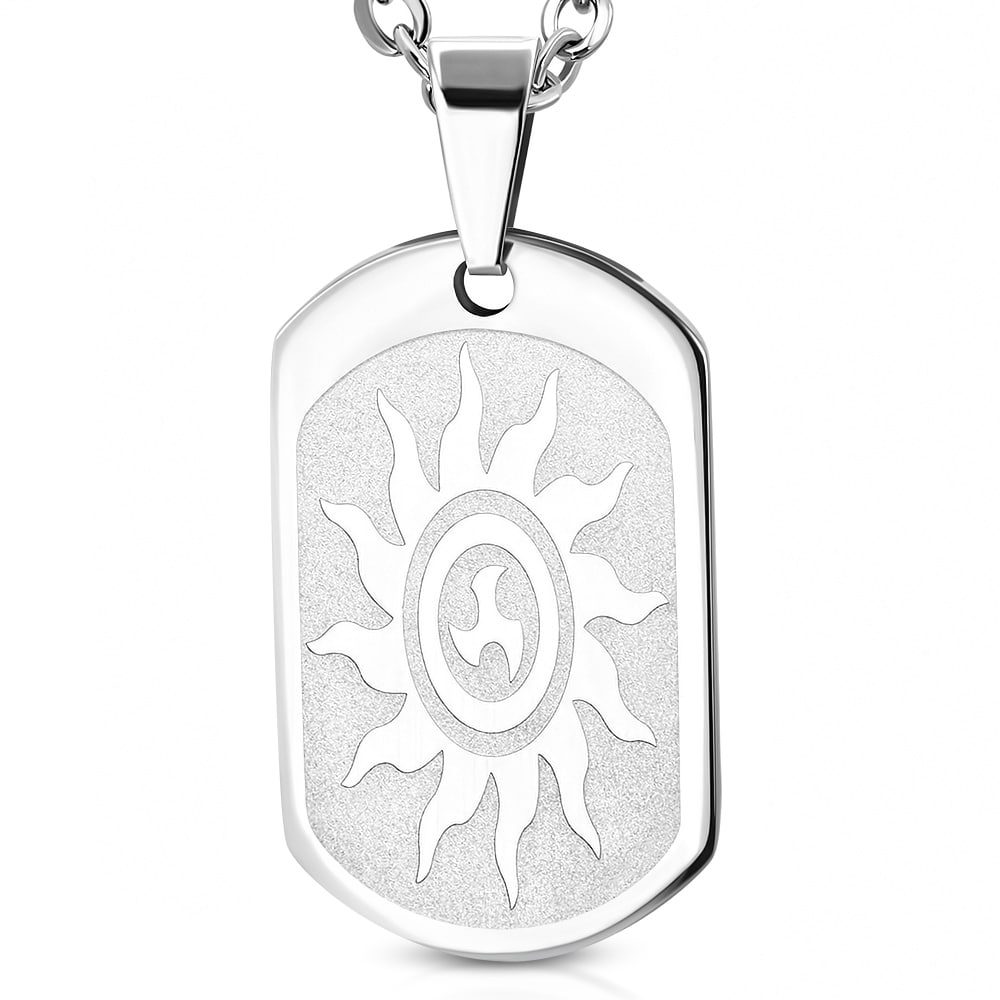 Ezüst színű, gravírozható, nap mintás nemesacél medál