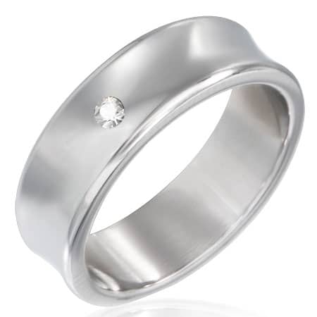 Ezüst színű, homorú nemesacél gyűrű ékszer, cirkónia kristállyal
