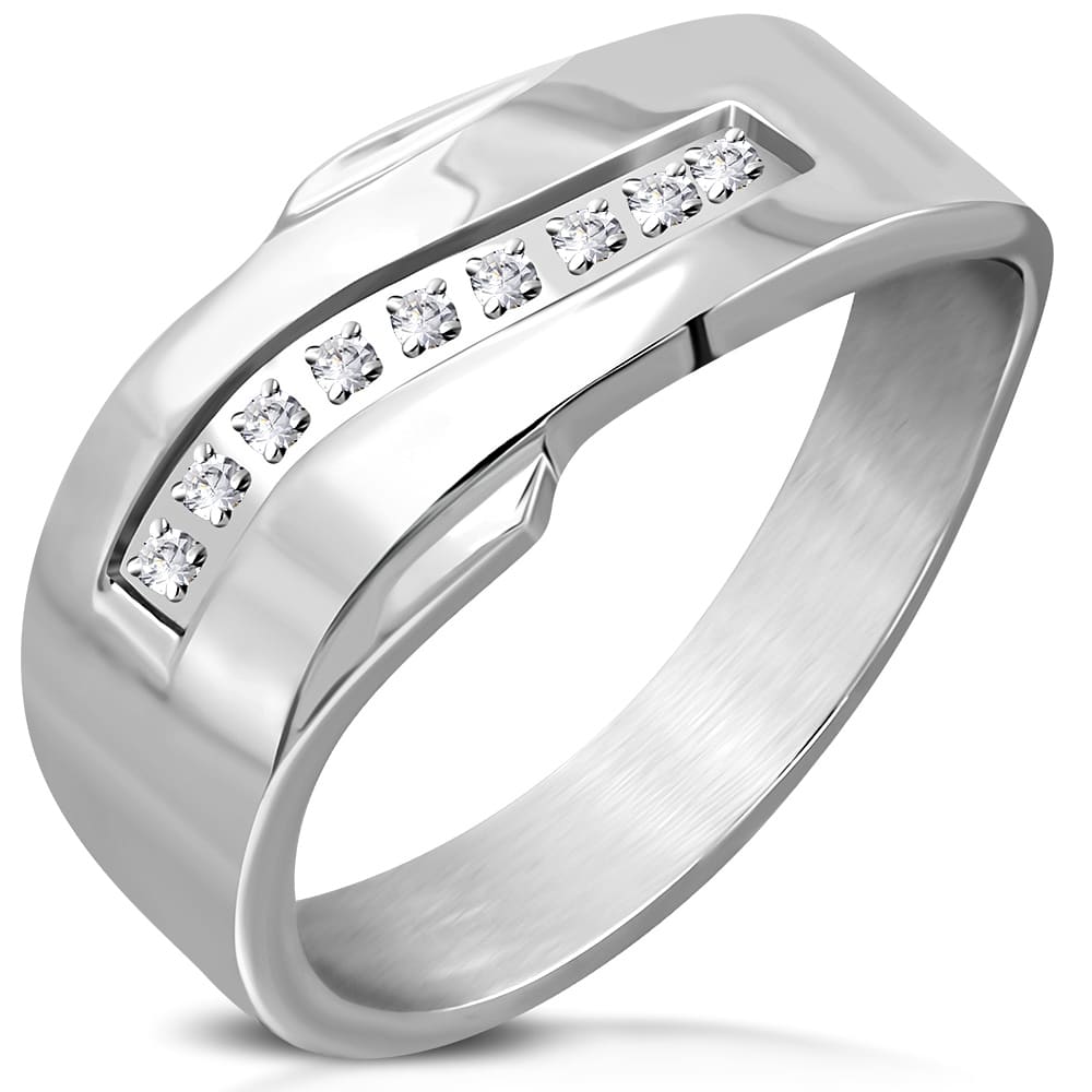 Ezüst színű hullám alakú cirkónia köves nemesacél gyűrű.