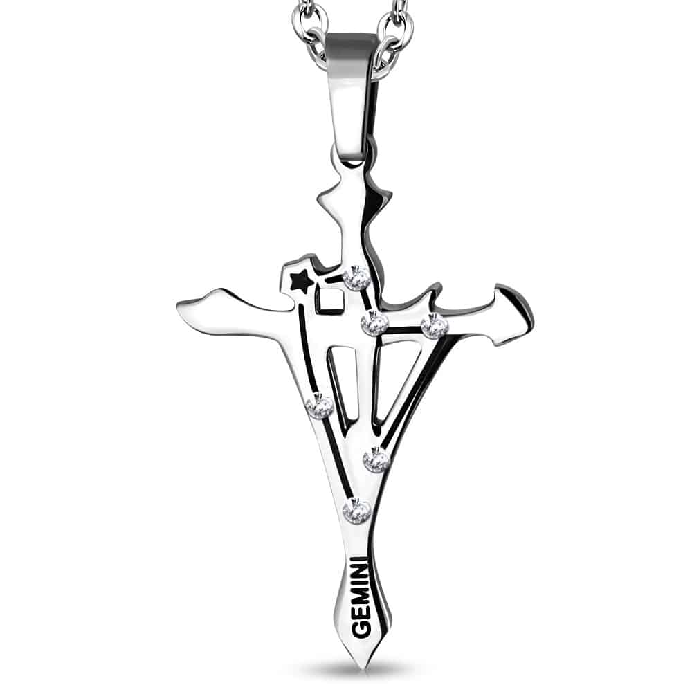 Ezüst színű, Ikrek horoszkóp nemesacél medál, cirkónia kristállyal