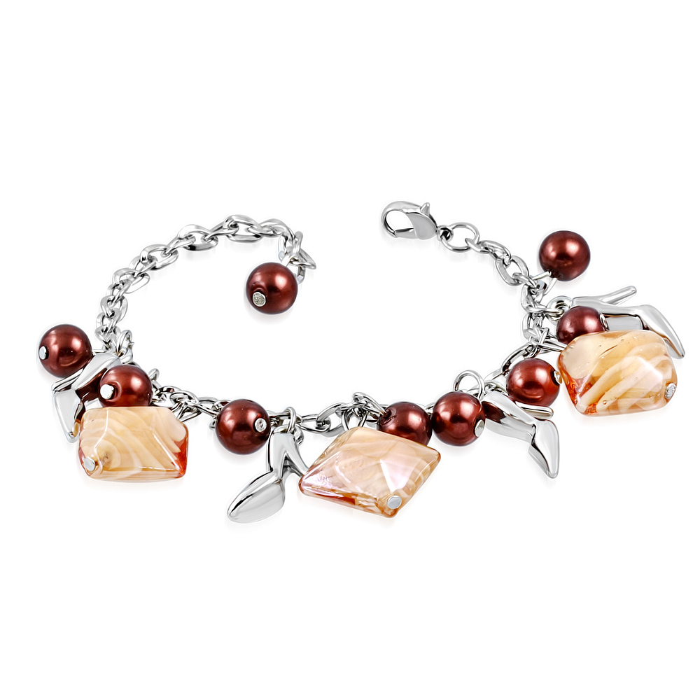 Ezüst színű karlánc barna díszekkel
