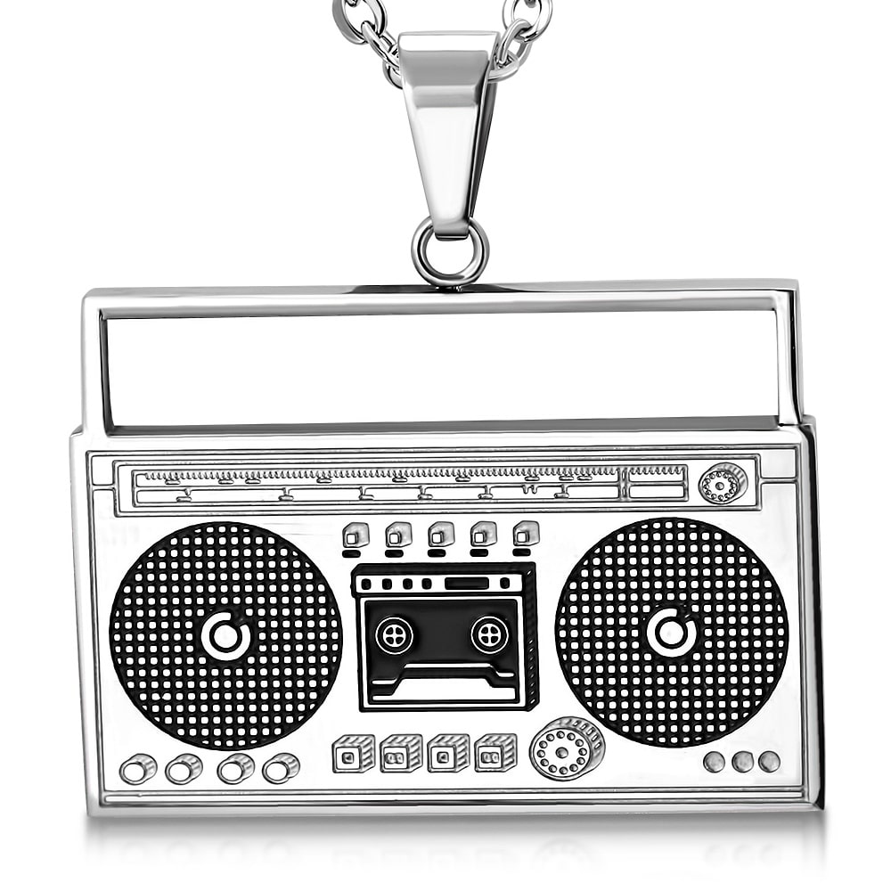 Ezüst színű, kazettás magnó alakú nemesacél medál
