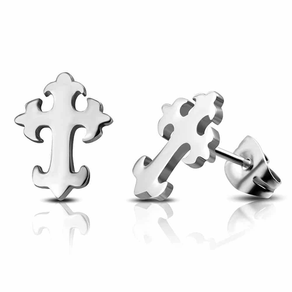 Ezüst színű, kereszt alakú nemesacél fülbevaló