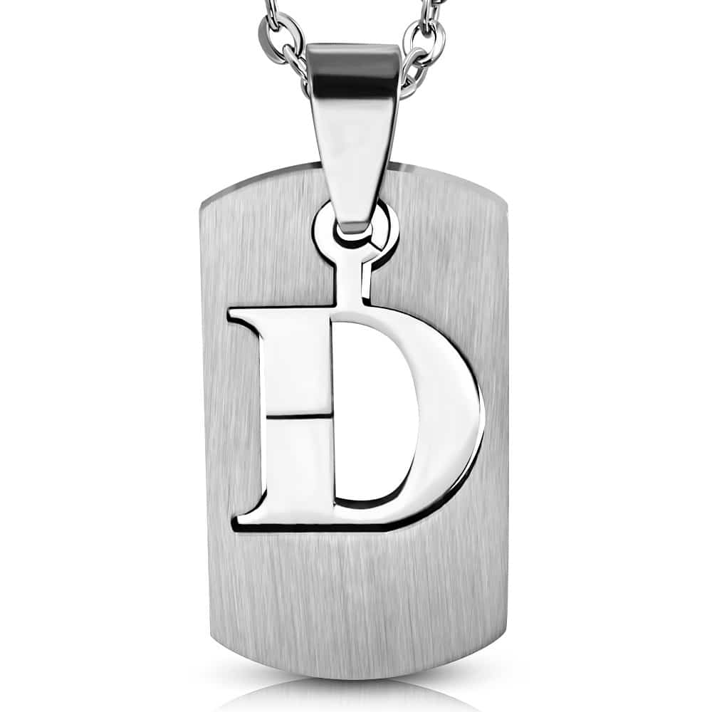 Ezüst színű, két részes, kivágott “D” betű mintájú nemesacél medál
