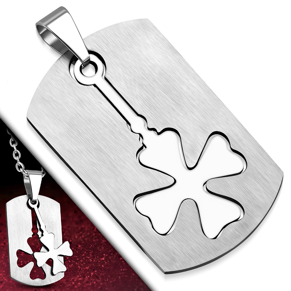 Ezüst színű, két részes, kivágott lóhere mintás nemesacél medál