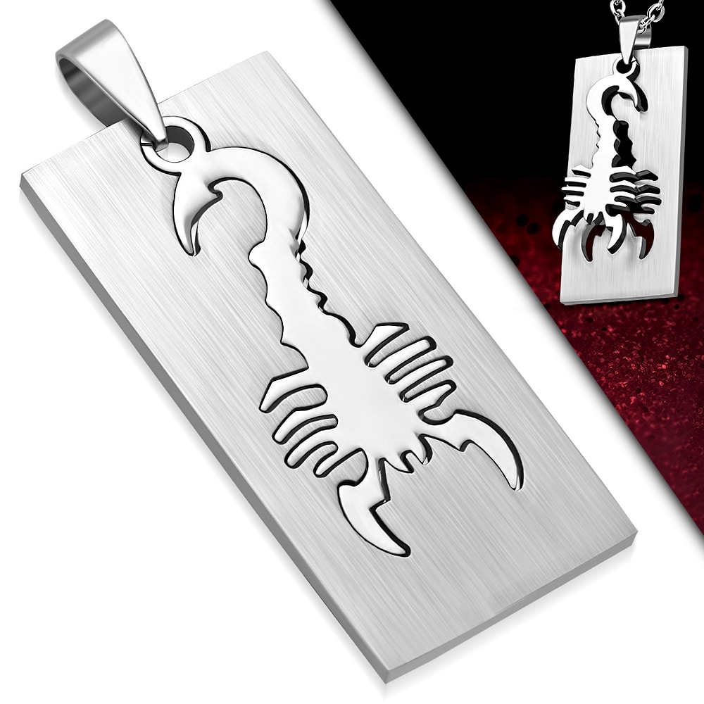 Ezüst színű, két részes, kivágott skorpió mintájú nemesacél medál