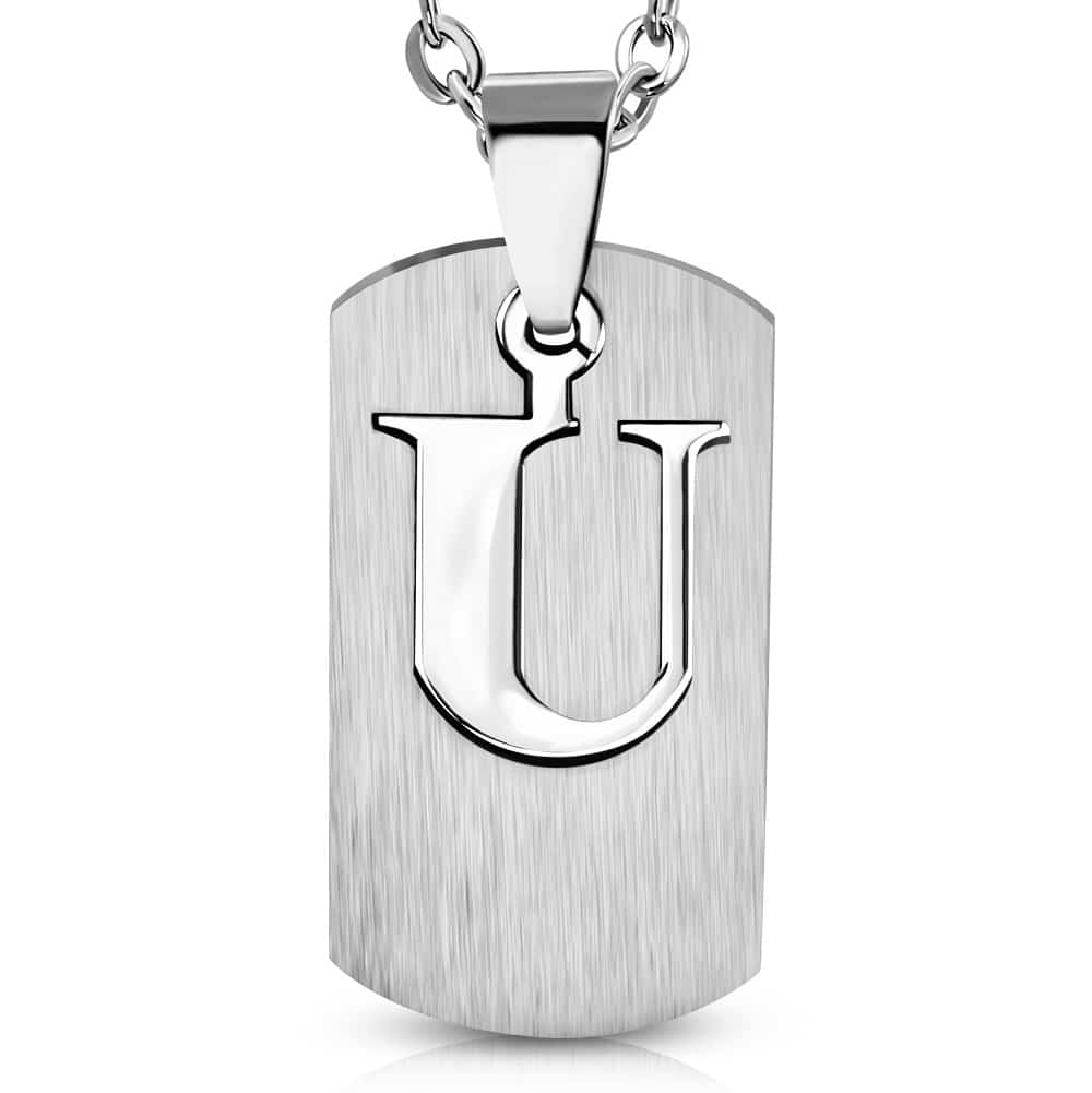 Ezüst színű, két részes, kivágott “U” betű mintájú nemesacél medál