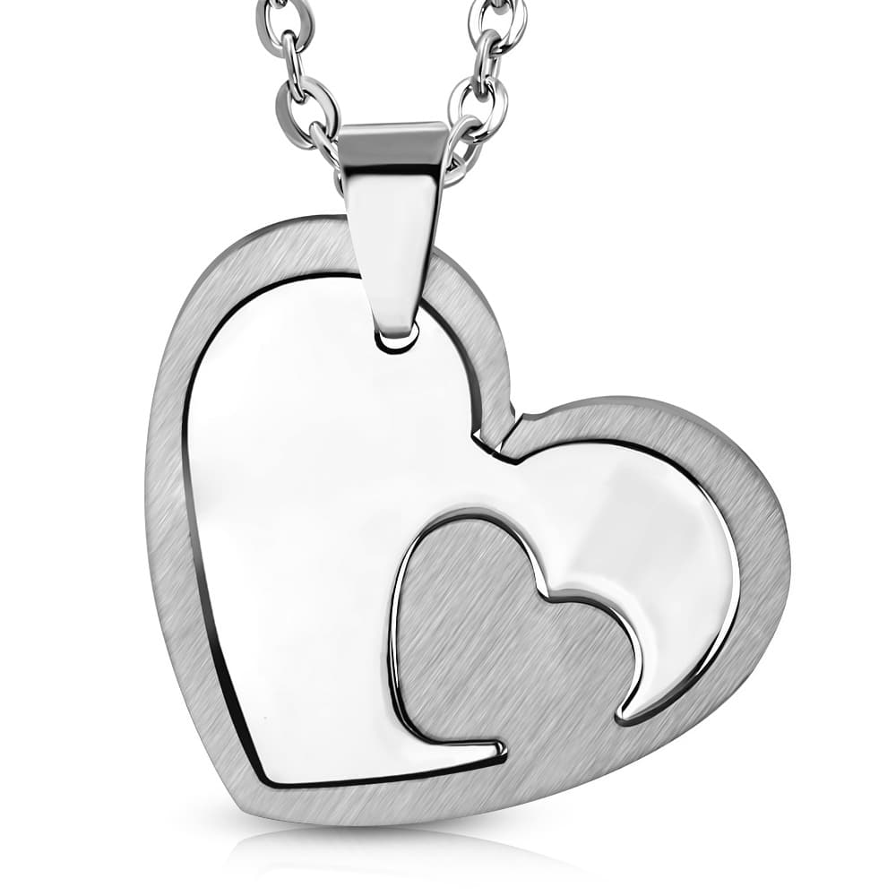 Ezüst színű, két részes, szív alakú nemesacél medál