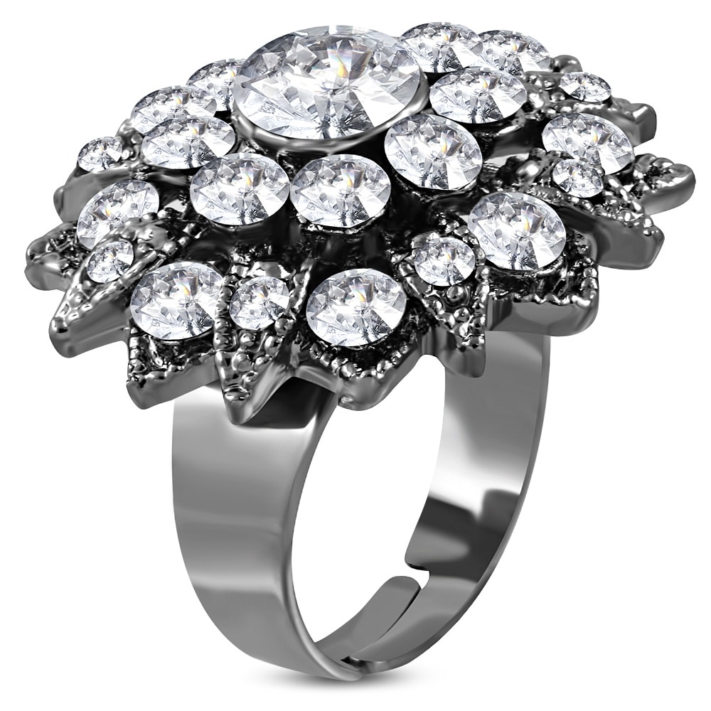 Ezüst színű kristályos állítható méretű nemesacél divat gyűrű ékszer