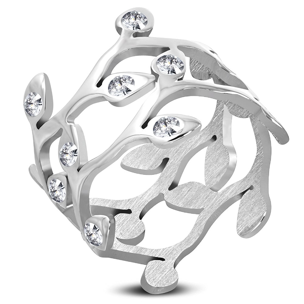 Ezüst színű levél mintájú nemesacél gyűrű cirkónia kristállyal