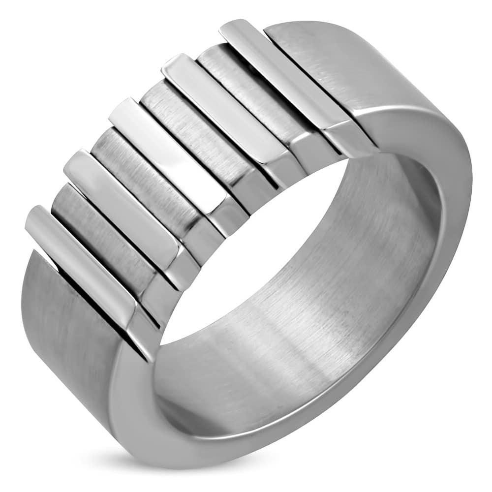 Ezüst színű, matt felületű, bordás nemesacél gyűrű ékszer