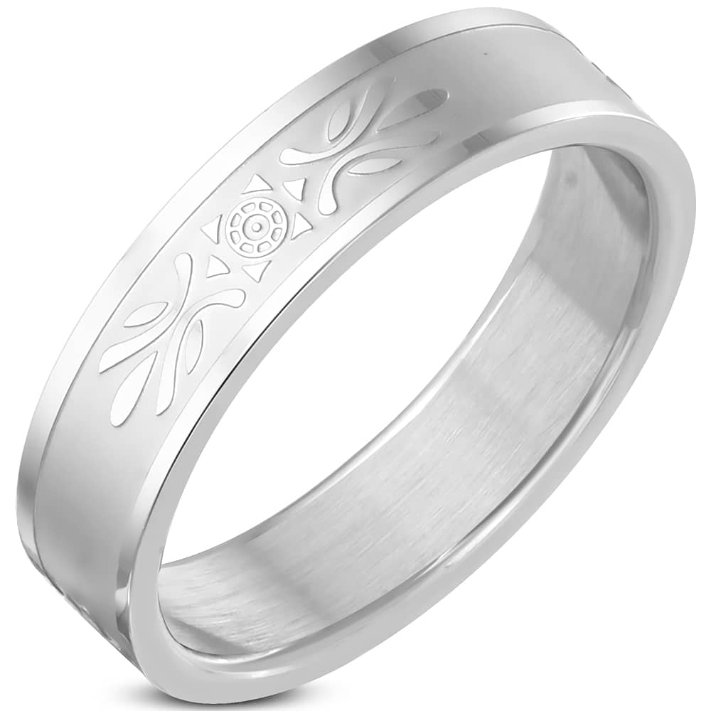 Ezüst színű, matt felületű nemesacél gyűrű virág mintával
