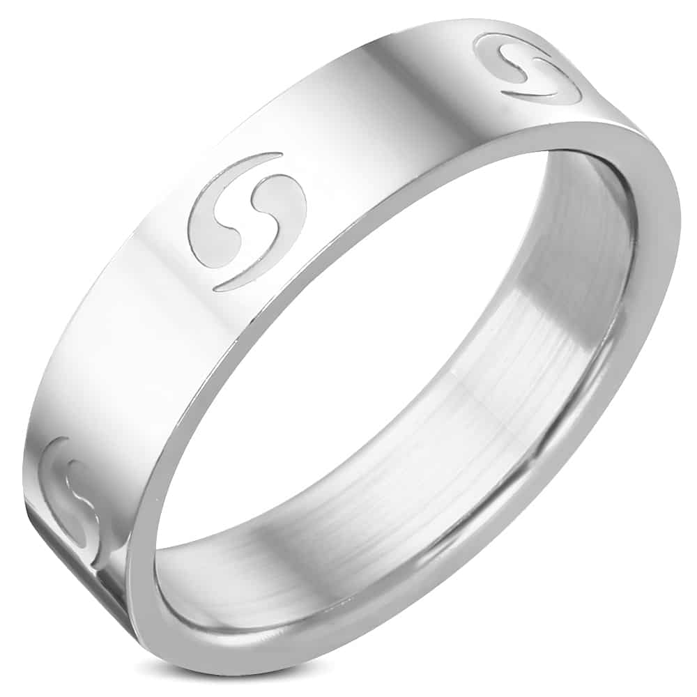 Ezüst színű, matt felületű nemesacél gyűrű félhold mintával