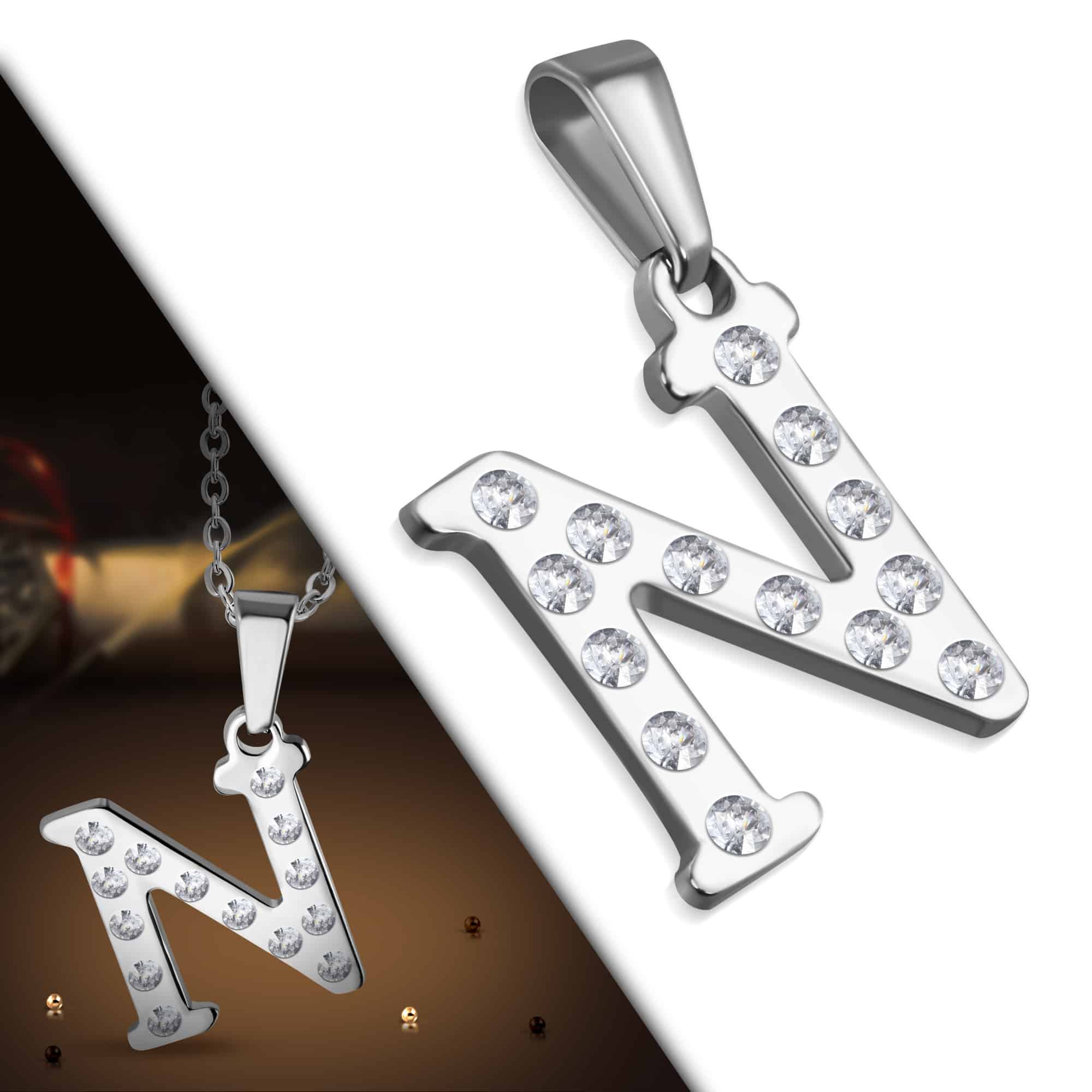 Ezüst színű nemesacél betű medál cirkónia kristályokkal “N”