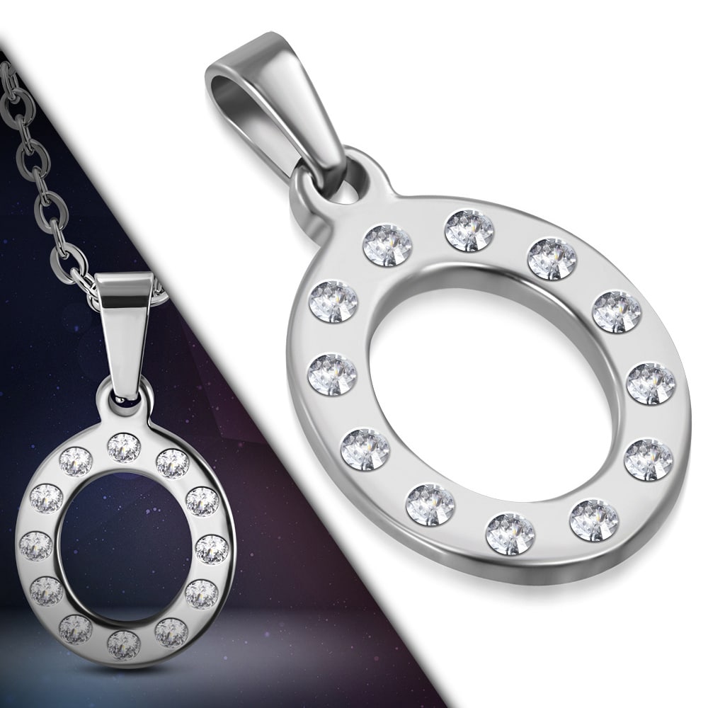 Ezüst színű nemesacél betű medál cirkónia kristályokkal “O”