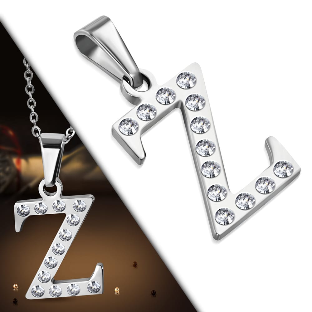 Ezüst színű nemesacél betű medál cirkónia kristályokkal “Z”