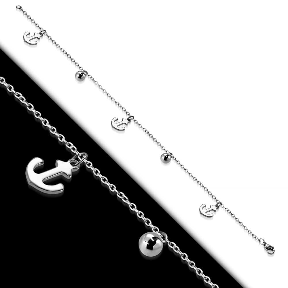 Ezüst színű nemesacél bokalánc, horgony alakú dísszel
