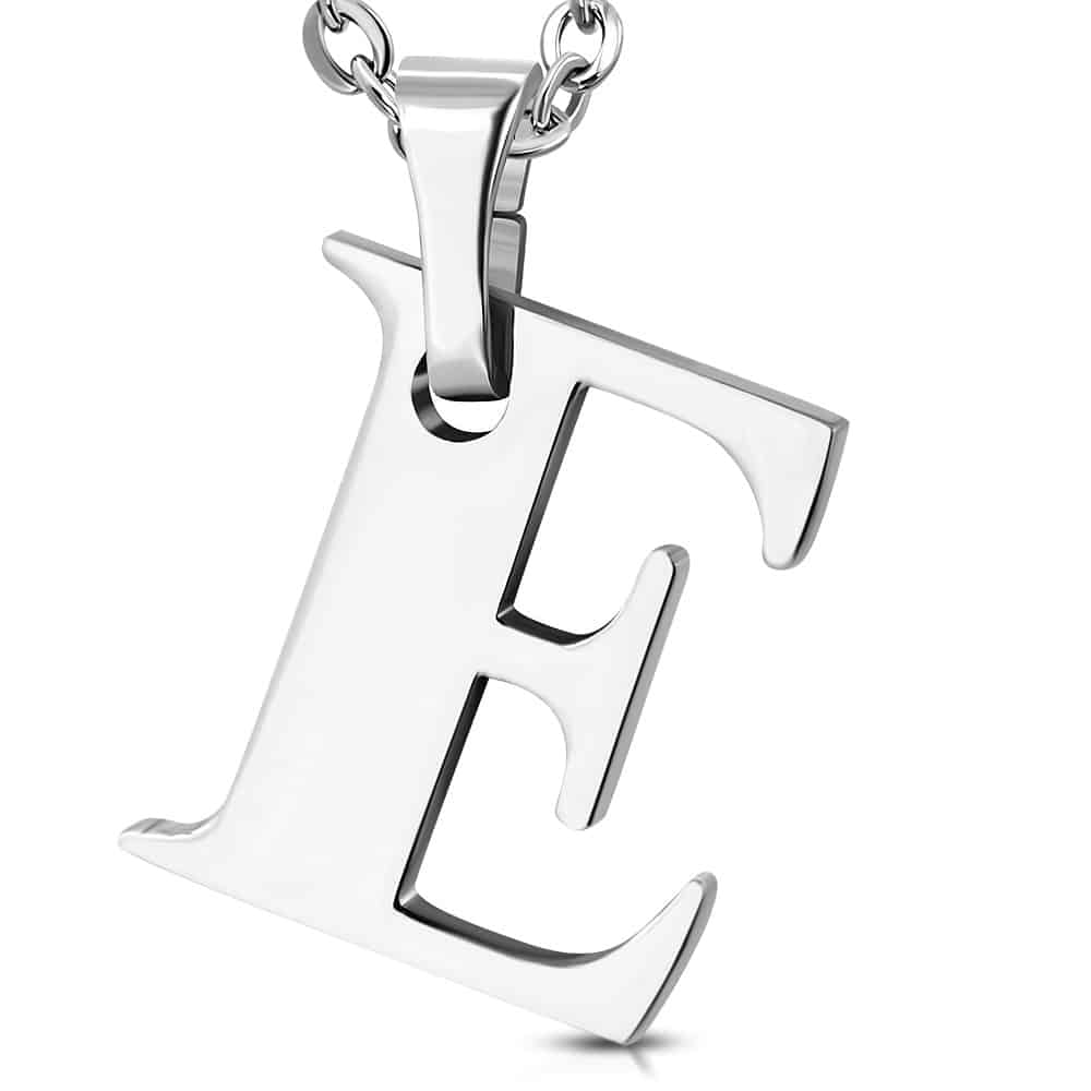 Ezüst színű, nemesacél “E” betű medál