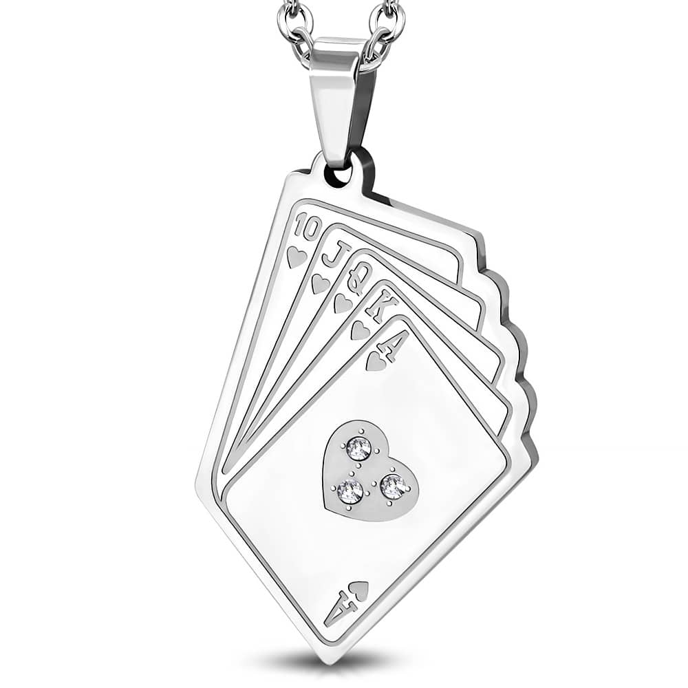 Ezüst színű, nemesacél francia kártyalap medál, cirkónia kristállyal