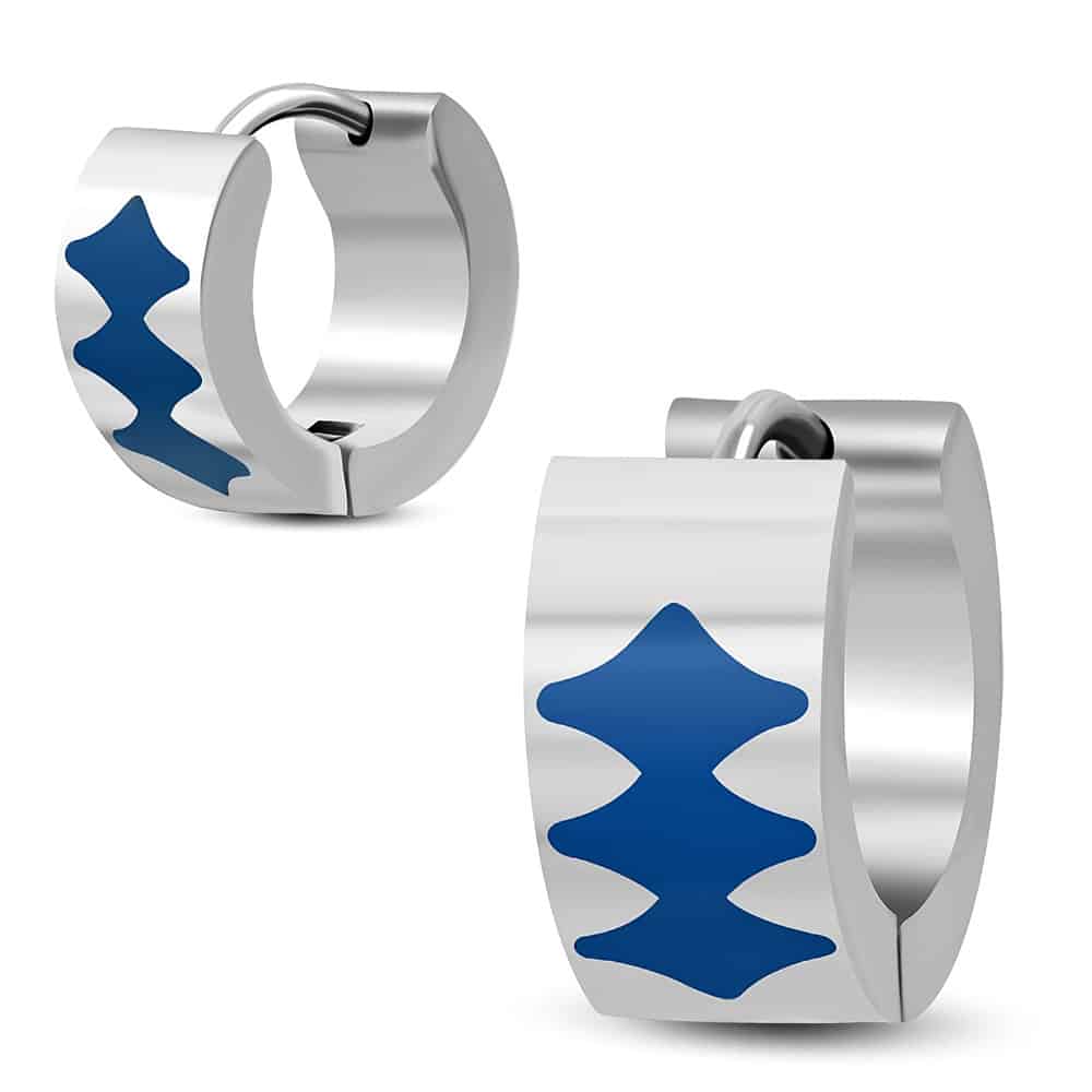 Ezüst színű nemesacél fülbevaló, kék színű dísszel