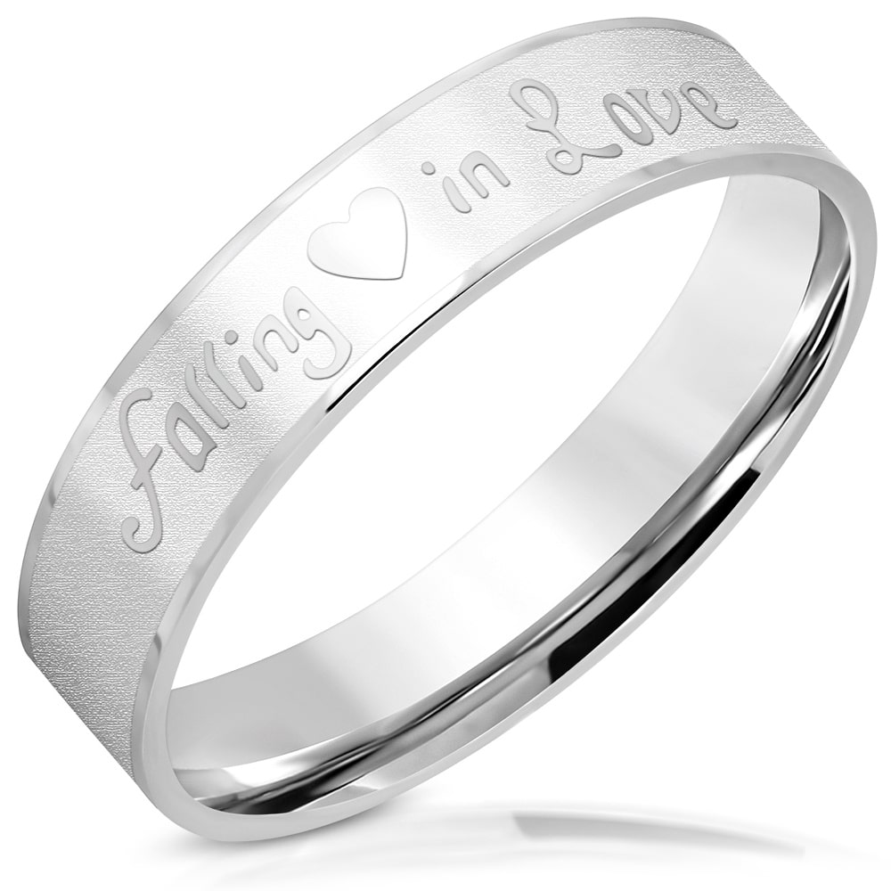 Ezüst színű nemesacél gyűrű, Falling in Love felirattal
