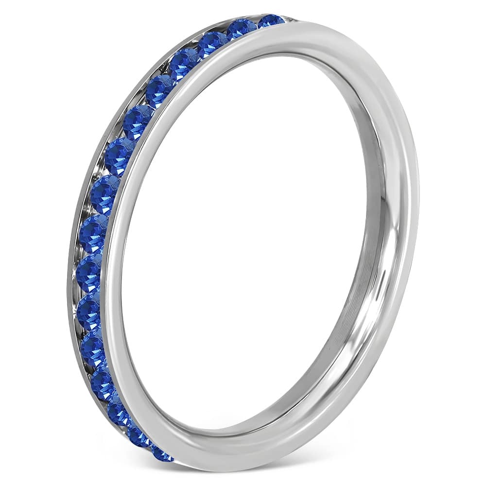 Ezüst színű nemesacél gyűrű, sötétkék cirkónia kristályokkal