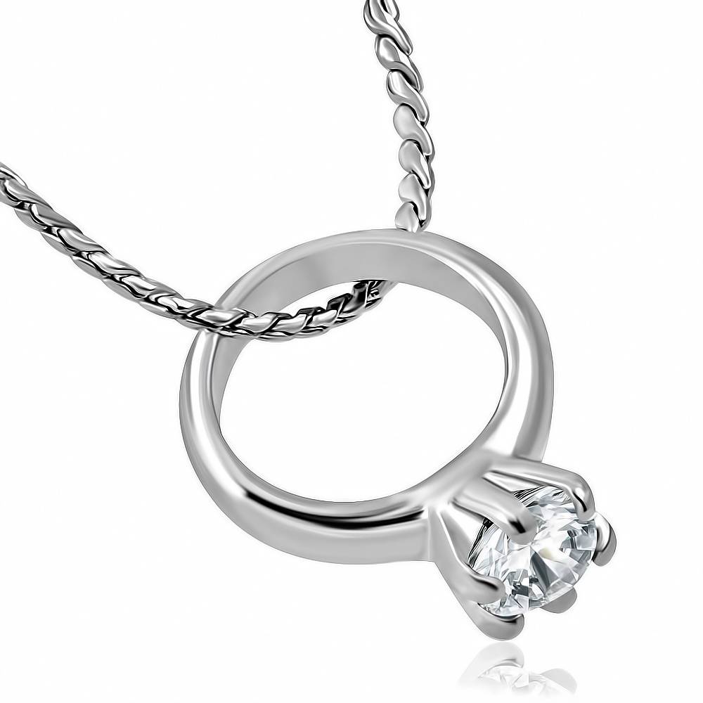 Ezüst színű nyaklánc, cirkónia kristályos gyűrű medállal