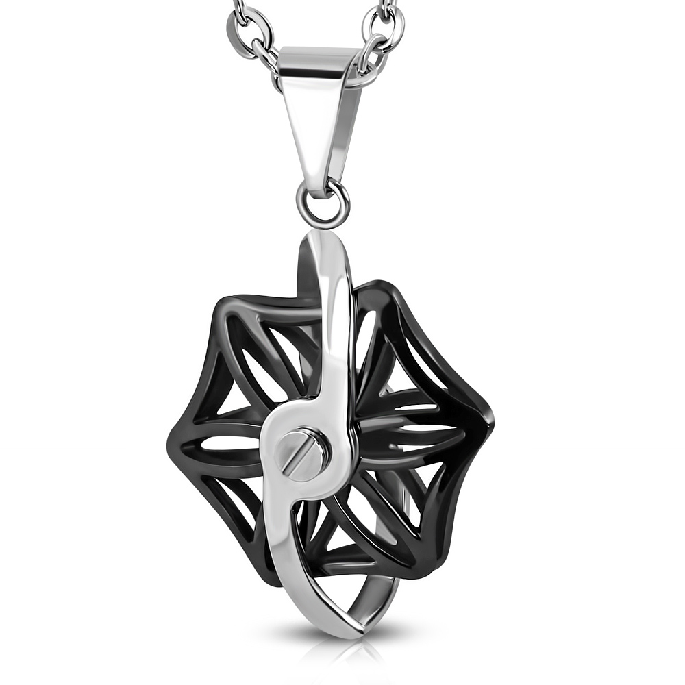 Ezüst színű nemesacél medál ékszer fekete színű forgó dísszel