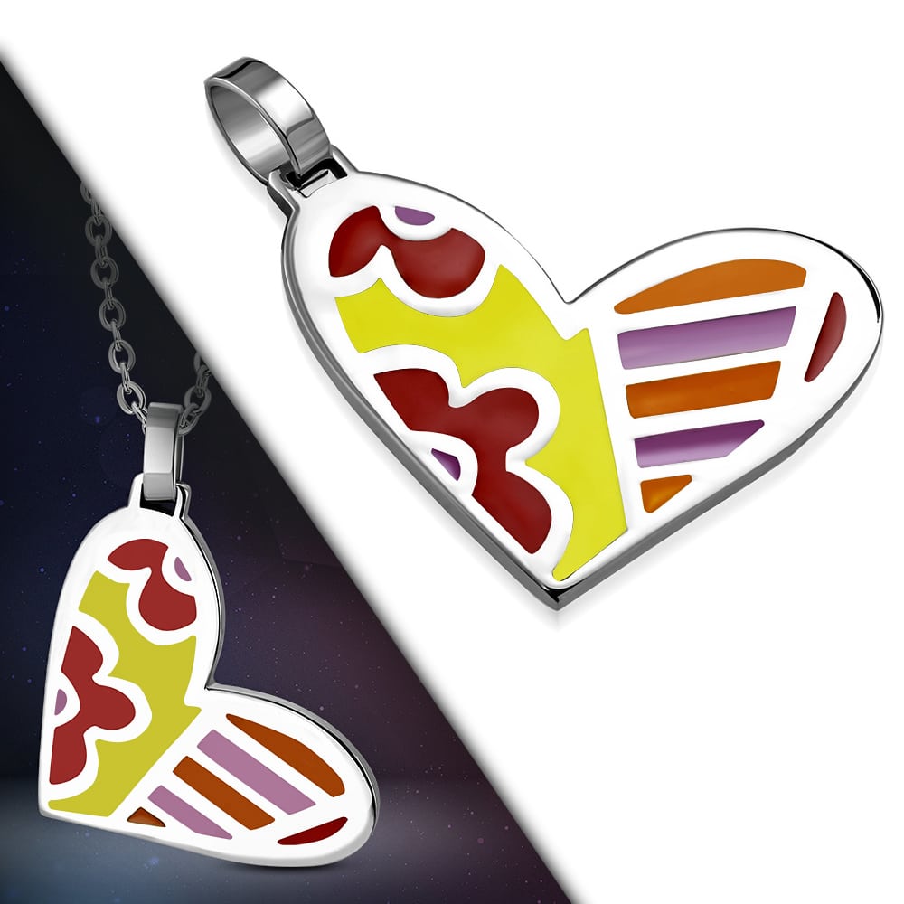Ezüst színű nemesacél szív alakú medál színes zománc berakással