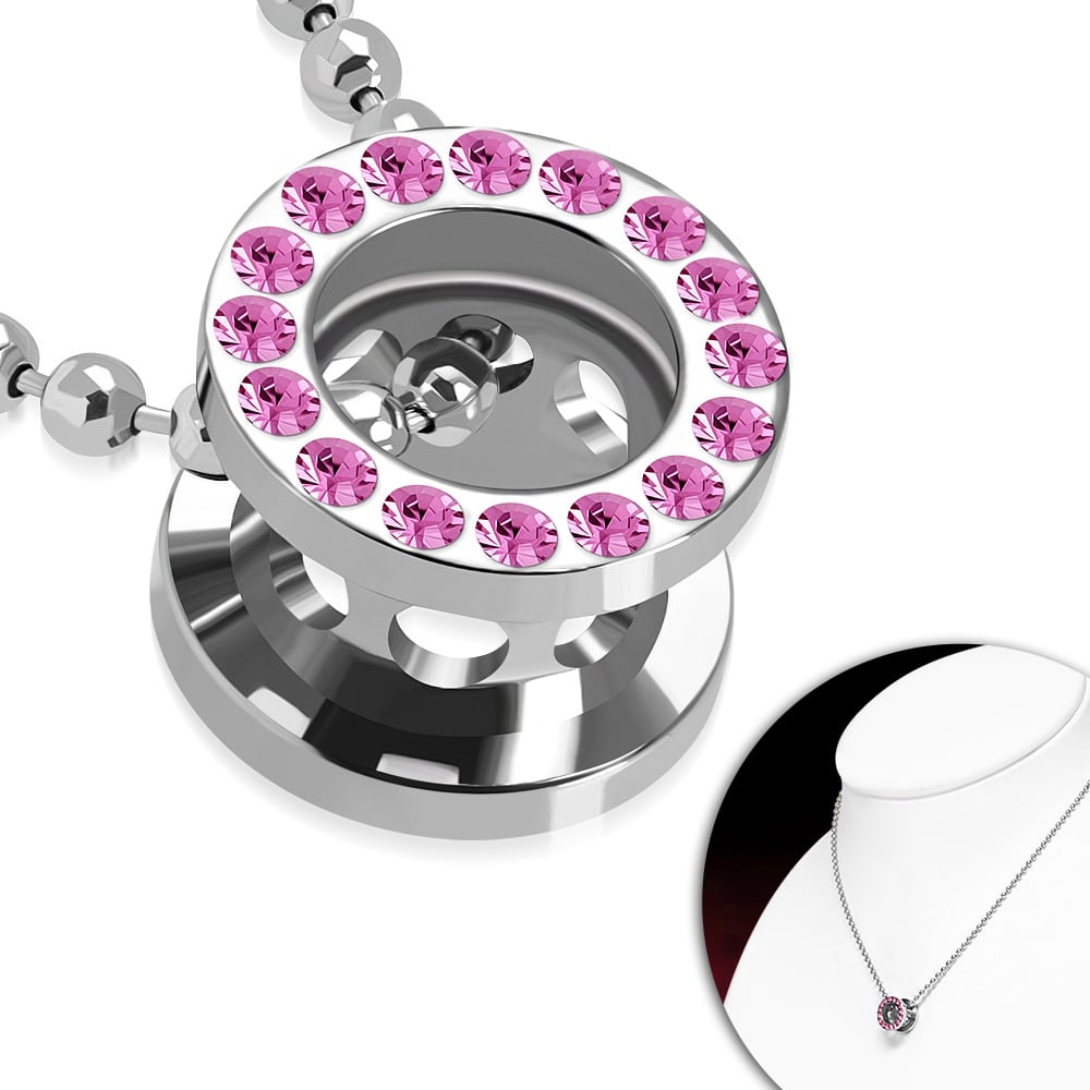 Ezüst színű nyaklánc, GYŰRŰ MEDÁLLAL PINK KÖVEKKEL